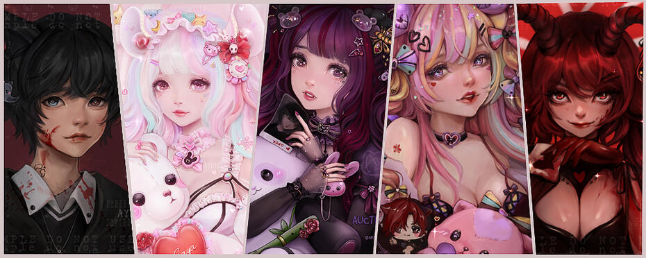 • Complex OCs will cost extra. Plushies/pets/wings/props